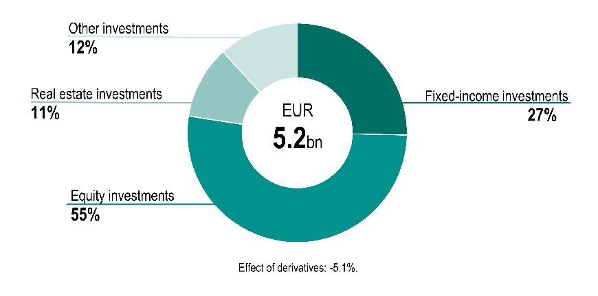 We invest our accrued funds profitably and securely as a means of ensuring future pensions. The aim of our investment activities is to achieve the best possible return in order to ensure sustainable funding for pensions.