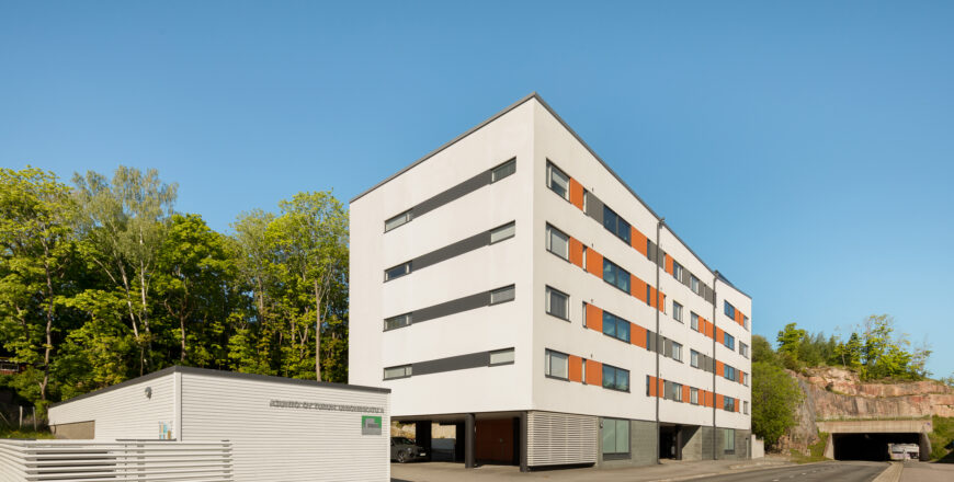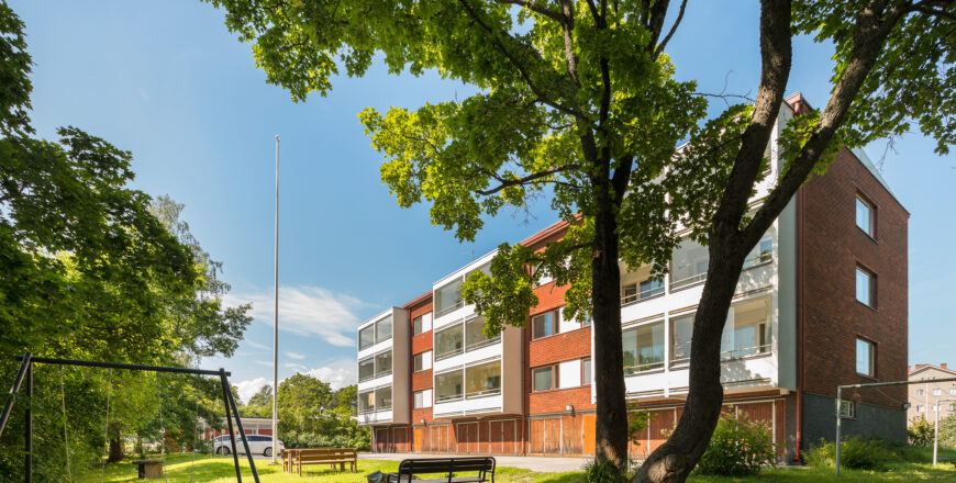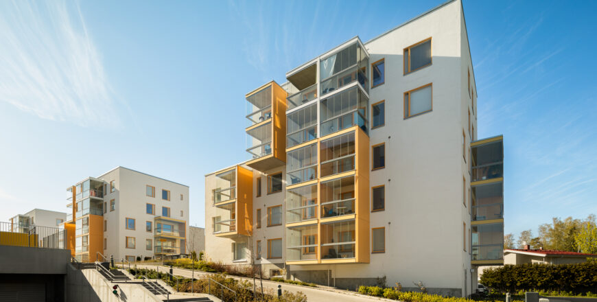 Neljä kodikkaan modernia kerrostaloa hyvien kulkuyhteyksien varrella.