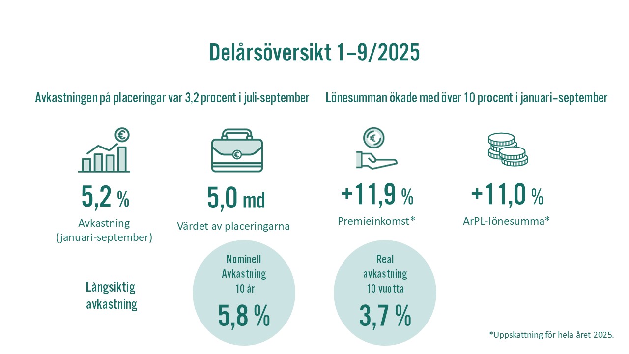 I januari–september var avkastningen på arbetspensionsbolaget Veritas placeringar 5,2 procent och under årets tredje kvartal 3,2 procent. Veritas har uppvisat en kraftig tillväxt under året och premieinkomsten uppskattas i år öka med nästan 12 procent.