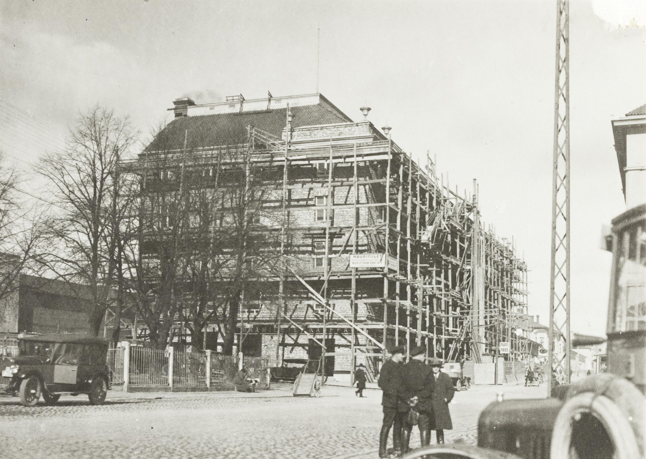 Yliopistonkadun puoleinen osa valmistui helmikuussa 1927. Jotta Maamiesten Kauppa Oy:n myymälätoiminta saattoi jatkua keskeytyksettä, vanha Strandellin puutalo purettiin osissa. Kun myymälä muutti Yliopistonkadun uusiin tiloihin, viimeinen pätkä vanhasta puutalosta purettiin Kauppiaskadun puoleisen siiven rakentamisen tieltä.