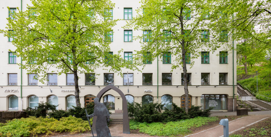 Olavintie 2:ssa sijaitseva rakennus seisoo ylpeästi Aurajoen rannalla, Kaskenmäen kupeessa – vain kivenheiton päässä keskustan palveluista ja kulttuurikohteista. Kauniilla paikalla sijaitseva 7-kerroksinen rakennus tarjoaa useita mahdollisuuksia toimivan pohjaratkaisunsa, keskeisen sijaintinsa ja upean Turun keskustan ylle avautuvan näköalansa ansiosta. Kohde on monen käyttäjän toimistotalo, joka on kaunis yhdistelmä vanhaa ja uutta.