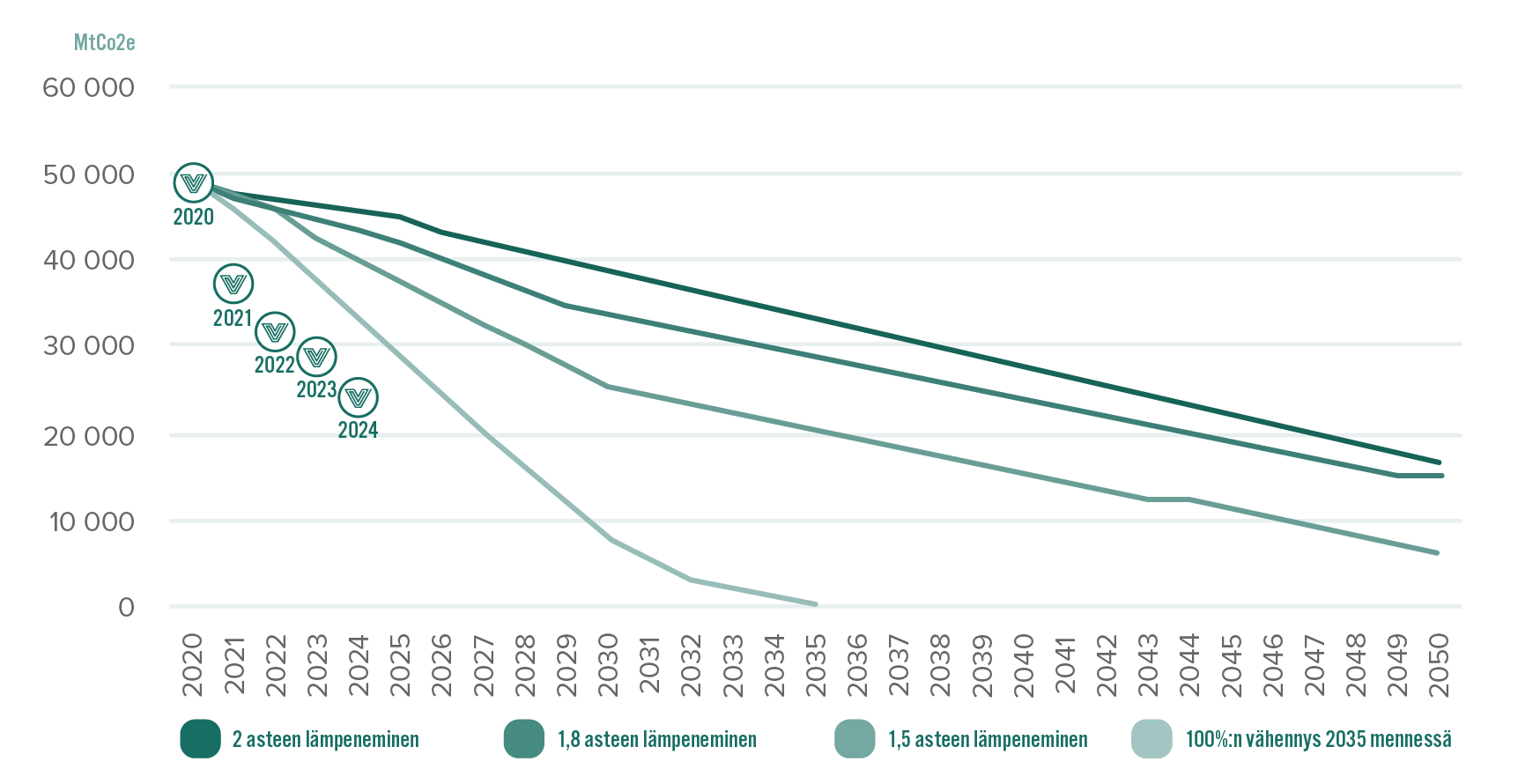 - 2025: painotettu hiili-intensiteetti -30 %